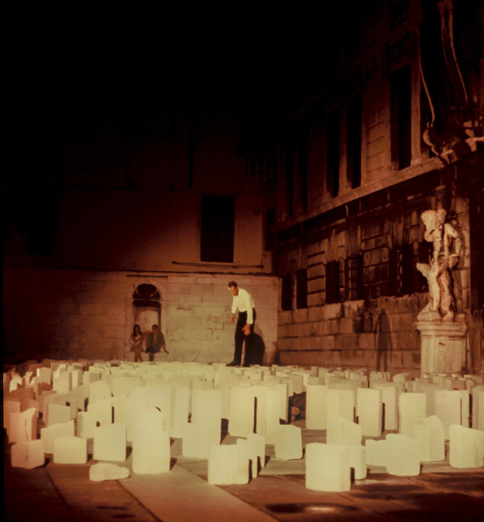 Five bodies and hundreds of breeze blocks come together in a rapidly evolving architectural procession - the building and rebuilding of historical tableaux, from the story of Genesis to depictions of modern man. Sheer physical endeavour and slap stick humour contribute to this analogy of materialism and of human ambition, achievement and collapse.