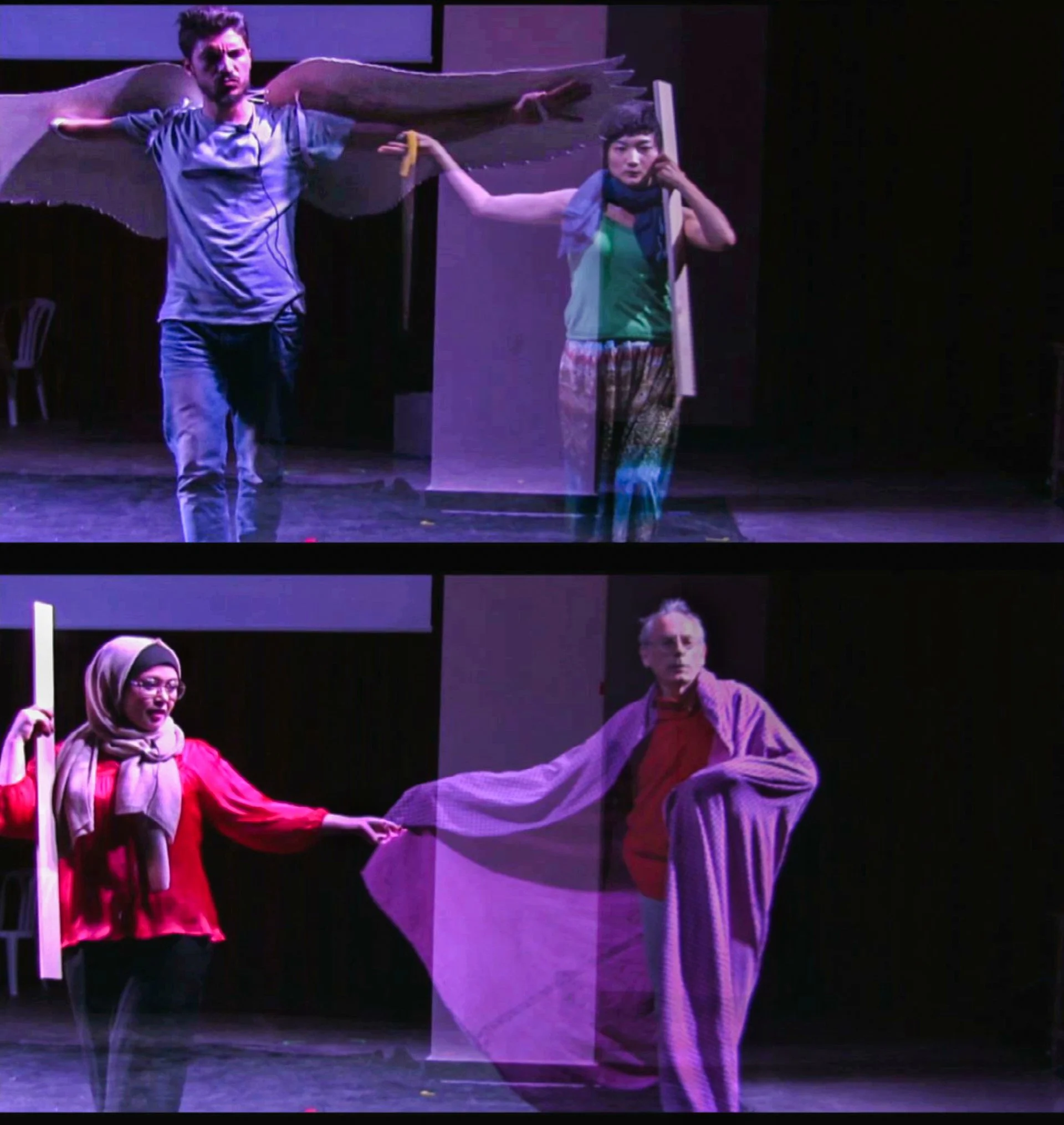 At the end the two audiences were invited to join the performers on stage for a communal meal together, and the chance to mingle with those on the other side.