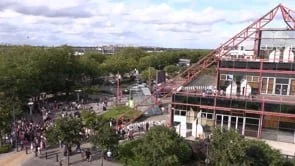 Dodging the trams, the line left Place Franklin to go through shops and restaurants and businesses in the city centre. Passing by the Place de la Reunion the line returned 10 minutes later to climb the Temple Saint-Etienne and fall 40m from the roof to collapse the block towers.