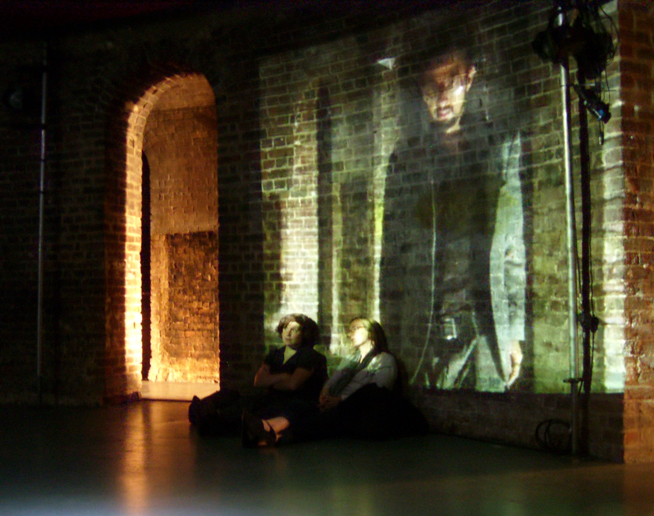 Like a torch shone around a dark room, a beam of light illuminates the walls piece by piece; people, décor and objects emerging from the darkness, brilliantly lit for a moment, before disappearing again into the dark. The beam of light is a projection of the same room, the same décor, with the image projected onto the objects themselves, but the people revealed have moved, are doing different things, are absent. They look out of blinded windows, and enter through closed doors; as revealed by a circling camera sometime in the past. Sometimes the camera moves outdoors, and the viewer is surrounded by the fields and woods, each angle progressively revealed by the rotating projector. Like a torch shone around a dark room, a beam of light illuminates the walls piece by piece; people, décor and objects emerging from the darkness, brilliantly lit for a moment, before disappearing again into the dark. The beam of light is a projection of the same room, the same décor, with the image projected onto the objects themselves, but the people revealed have moved, are doing different things, are absent. They look out of blinded windows, and enter through closed doors; as revealed by a circling camera sometime in the past. Sometimes the camera moves outdoors, and the viewer is surrounded by the fields and woods, each angle progressively revealed by the rotating projector.