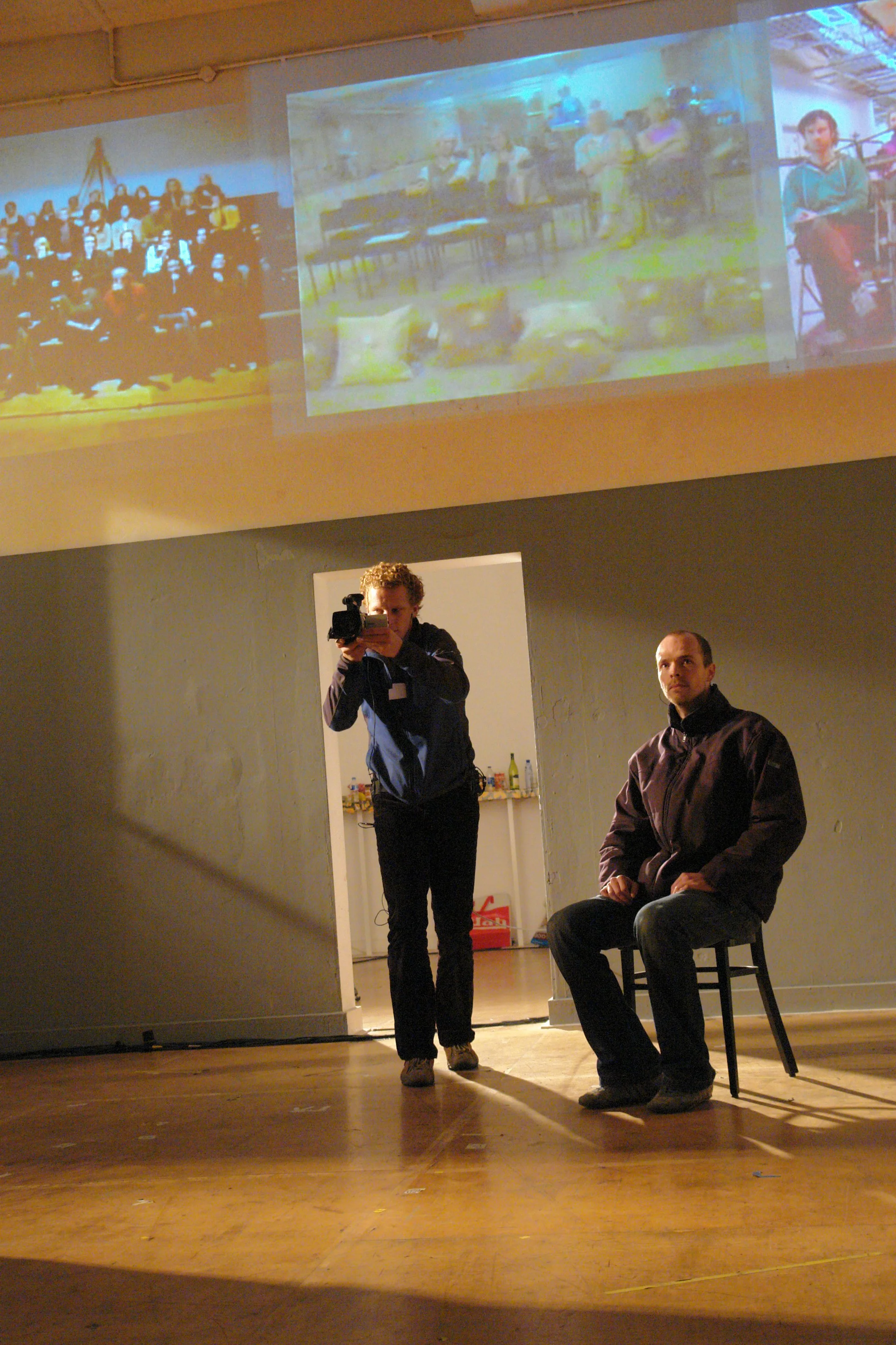 A basement in Brighton, a school in Groningen, and a gallery in Berlin merge to become a fourth imaginary space. The Other is You was performed at the same moment across Europe, projected live from each city onto three screens above the actors.